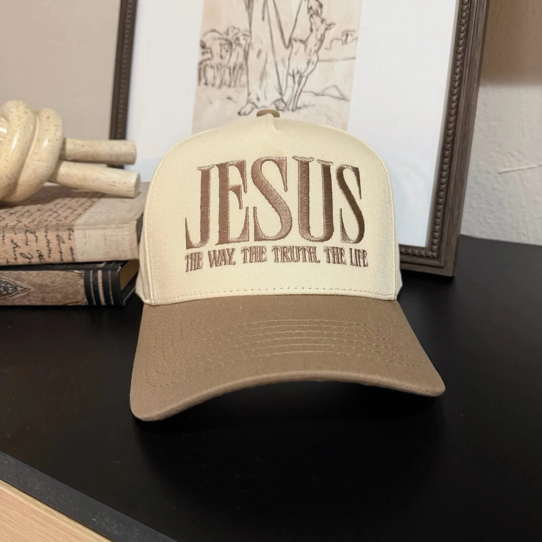 Shop › Worship Hat Image 1 of 2 Image 2 of 2 Worship Hat from $28.00 Canvas Snapback Trucker Hat Color: Select Color Tan Black/white stripe Quantity: Add To Cart Added! Canvas Snapback Trucker Hat Reviews Reviewer Name Review Date Star Rating Description Posted on Etsy Product Show More You Might Also Like Embroidered make heaven crowded Sweatshirt from $26.00 Jesus. The Way, The Truth, The Life Hat $28.00 Keep Prayin' Hat $29.00 God Is Within Her, She Will Not Fall Hat $28.00 Raising Believers Hat $29.00